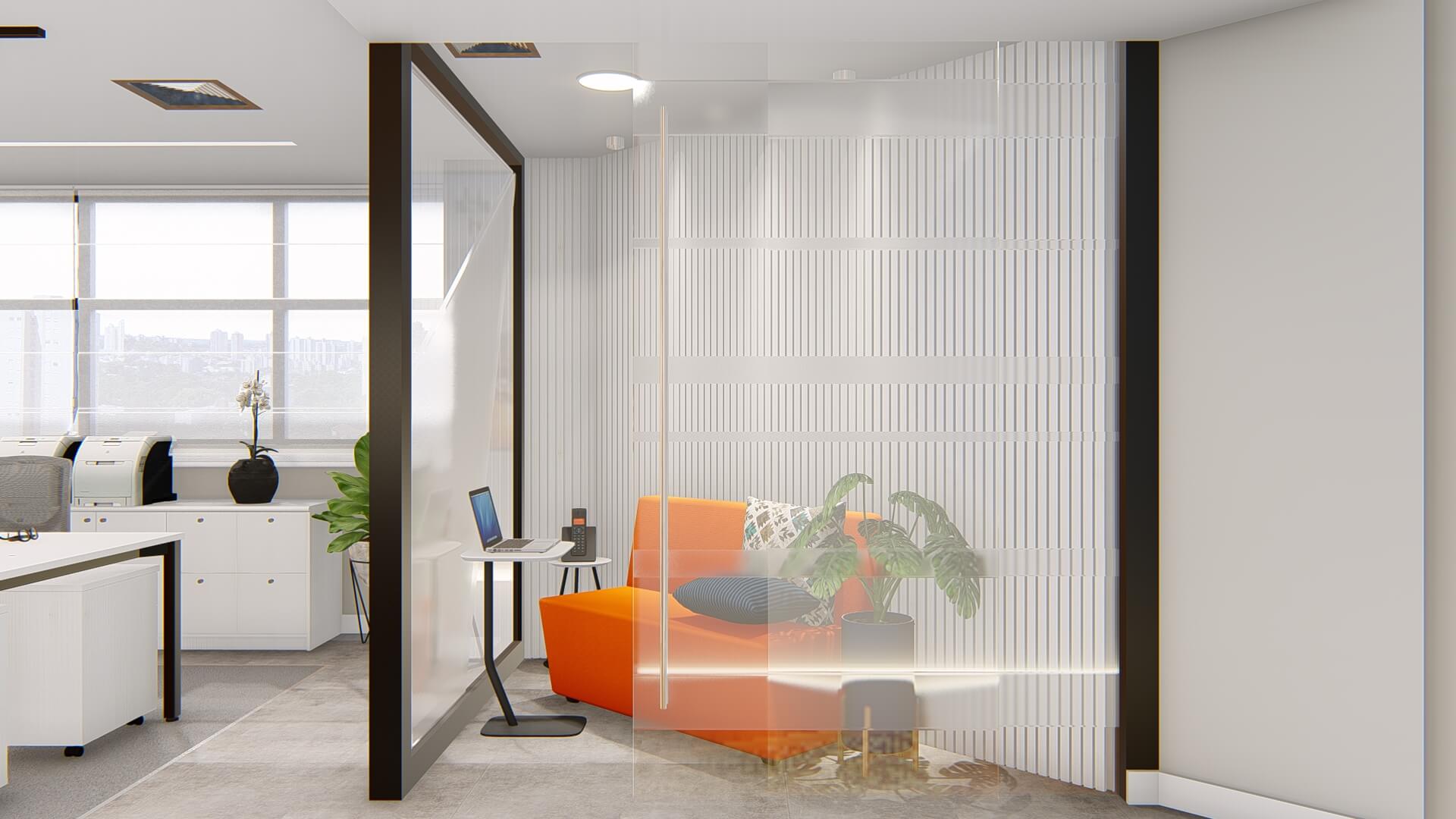 Escolha de mobiliário, paleta de cores, materiais e ambientação para transmitir sua identidade de marca.